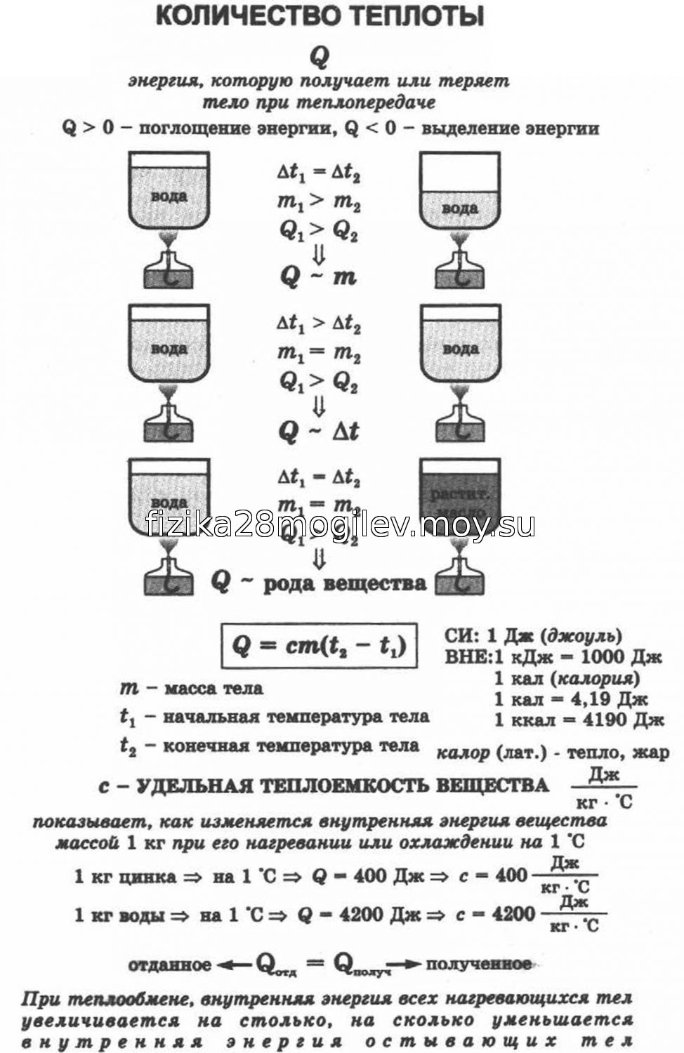 8 класс. Урок 6. Расчет количества теплоты при нагревании и охлаждении. Удельная теплоемкость |
