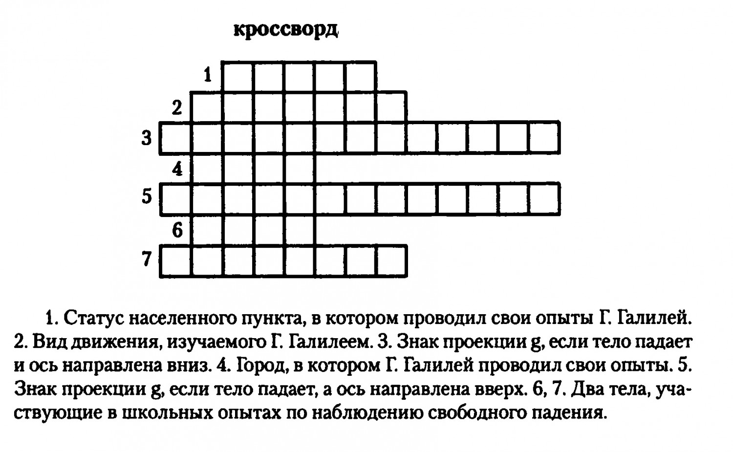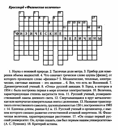 Кроссворд для 7 класса "Физические величины"
